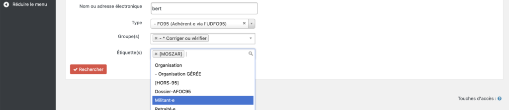 Le dernier champ – Étiquette(s) – permet de combiner les autres recherche avec une ou plusieurs étiquettes.