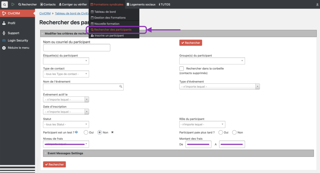 Rechercher des Participants à des événements