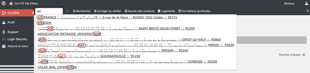 Cette rechercher est disponible sur TOUTES les pages de Civi FO Val d’Oise